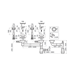 Арматура для двухчашевых моек с прямоугольными переливами и декоративными элементами для корзины OMOIKIRI WK-2C GB