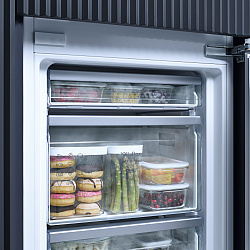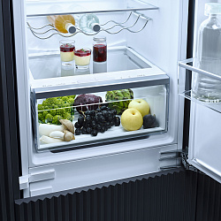 Модель KD7714 Тип товара холодильник-морозильник Тип управления EasyControl Интегрированный прибор Нет Основные характеристики Класс энергоэффективности по стандартам Евросоюза E 4-звездочная морозильная зона, л 84 Количество ящиков морозильной камеры 3 Мощность замораживания, кг/сут 4,20 Количество полок 4 Количество выдвижных ящиков для овощей и фруктов 1 Дверные полки 3 Количество решёток для консервированных продуктов в дверце 2 Полка для бутылок в дверце 1 Полка для бутылок из хромированного металла Да Количество морозильных боксов 3 Общий полезный объём, л 267 Технология ComfortFrost ? Да Технология сохранения продуктов DailyFresh Технология DuplexCool ? Да Система свежести DailyFresh Технология открывания двери Нет Количество температурных зон 2 Генератор льда IceMaker со стационарным подключением воды ? Нет Система VarioRoom ? Да Удобные функции Режим вечеринки ? Да Автоматическая функция суперохлаждения Да Функция суперзамораживания Да Активное увлажнение в верхнем ящике Нет Тип конструкции Тип конструкции Встраиваемый прибор Система SoftClose, можно переоборудовать Нет Возможность установки Side-by-Side ? Нет Переставляемый дверной упор Да Дверные петли Справа Система крепления фасада ? Жесткое крепление Door-on-door Эффективность, надёжность, удобство Русский язык дисплея ? Нет Звуковой сигнал об открытой дверце Да Отделение для хранения, л 183 Освещение холодильного отделения LED Срок безопасного хранения при неполадке, ч 9 Задняя стенка с покрытием CleanSteel Нет Холодильная камера, можно деактивировать Нет Комплектация Маслёнка в комплекте Нет Пакеты со льдом Нет Форма для льда Да Технические характеристики Напряжение, В 220,00-240,00 Длина сетевого кабеля, м 2,30 Частота, Гц 50 Предохранитель, A 10 Климатический класс ? SN-ST Потребляемый ток, мА 1000 Потребление энергии за 24 часа, кВт-ч/24 ч 0,63 Годовое энергопотребление, кВт·ч/год 228,86 Размеры Ширина (см) 54.1 Высота (см) 177.2 Глубина (см) 54.8 Минимальная ширина ниши, мм 560 Максимальная ширина ниши, мм 568 Минимальная высота ниши, мм 1772 Максимальная высота ниши, мм 1780 Глубина ниши, мм 550 Максимальный вес фронта дверцы холодильной камеры, кг 15 Максимальный вес фронта дверцы морозильной камеры, кг 15 Вес, кг 53,70 |