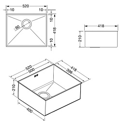 | Размер монтажного отверстия под мойку (см) | 52 x 41.8 |