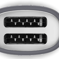 Матовая отделка Цвет основания: полированный хром Цвет верхней панели: полированный хром Материал основания/ материал верхней части: пластик Тип управления: рычаг, кнопки, поворотные переключатели Материал рычага: нержавеющая сталь Материал кнопок / переключателя: пластик Начало цикла: скользящий рычаг Кнопки с подсветкой Подсветка поворотного переключателя Автоматическое выбрасывание тостов Материал поддона для крошек: полированная нержавеющая сталь Ширина с рычагом управления: 325 мм Комплектация