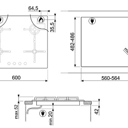 | Размер ниши встраивания (ШхГхВ) | 56-56.4х48.2-48.6 |