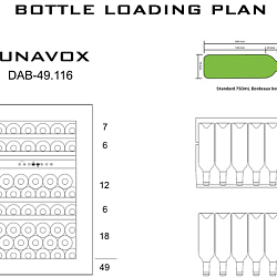 Стандартная вместительность рассчитывается по количеству бутылок «Бордо» 0,75 л. Это число также показывает максимальную загрузку при полной комплектации (полок, ящиков и других элементов).