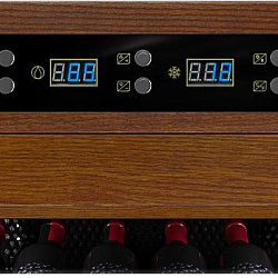 Материал корпуса: Сталь обшитая американским дубом Панорамное освещение Демонстрационное освещение Тип полок: Стационарная (1) / Демонстрационная (1) Термостат: Электронный Полки: массив бука