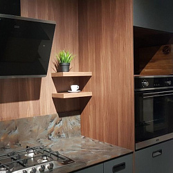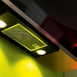 Аспирация по периметру Воздух всасывается по периметру вытяжки через узкие щели. Он собирается в потоки, которые направляются прямо к фильтрам внутри, не рассеивается на кухне. Благодаря этой технологией вытяжку можно сделать компактнее и энергоэффективнее. да