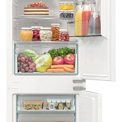 Количество стеклянных полок, шт.: 2 Контейнер для овощей и фруктов: 1 Лоток для яиц / льда, шт: 2 Полка-подставка для бутылок на дверце: с фиксатором Полки регулируемые: MultiAdjust Технические характеристики